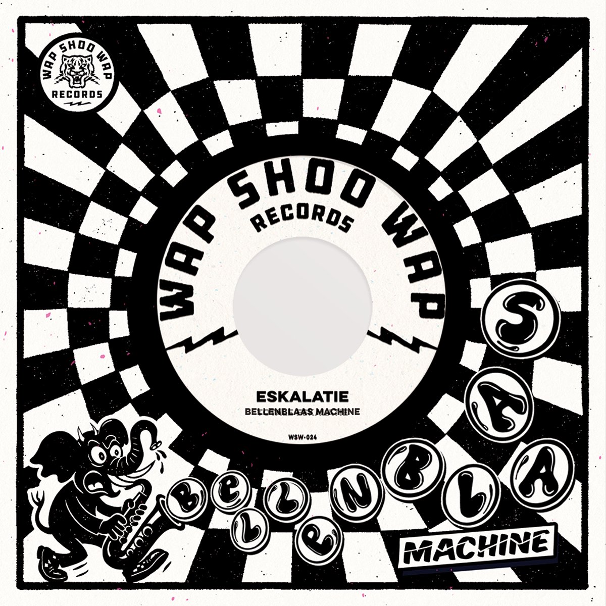 Eskalatie is a twelve-piece collective from Haarlem that guarantees unprecedented chaos. Inspired by the first two waves of ska, punk, and rhythm & blues, they create a unique and energetic “skacophony.” Their live shows are known as full-blown celebrations where the boundaries between band and audience completely dissolve. With this single, the band releases their first two tracks on Wap Shoo Wap Records: the dancefloor bangers “Totale Eskalatie” and “Bellenblaasmachine.”